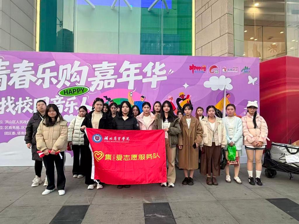 12月6日下午,由洪山区商务局、区文旅局、区大学之城办、团区委共同主办的“青春乐购嘉年华·寻找校园音乐人”大型青年文化活动在街道口银泰创意城热烈启动。计算机科学与技术学院集爱志愿服务队组织我校近百名大学生志愿者全程参与、倾力服务,以青春行动赋能文化活动,展现出新时代青年投身文明实践、助力城市活力的精神风貌。