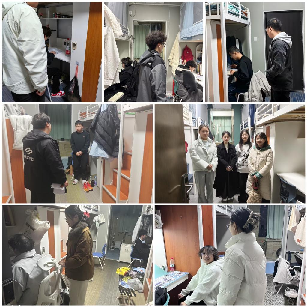 班会后,全体辅导员深入学生宿舍开展开学前专项查寝工作,为学子学习生活保驾护航。走访中,老师们深入各楼栋、走进宿舍,与学生亲切交谈,询问返校适应情况和新学期计划,倾听困惑与建议,叮嘱同学们调整作息、切换学习状态,以饱满的精神迎接新学期课程。安全排查是查寝重点,老师们对照管理要求,全面检查用电、消防及卫生状况,重点排查大功率电器使用、私拉乱接电线等问题,对隐患和卫生不足当场提醒整改,反复强调“人走电断、门窗紧闭”,强化学生安全防范意识。