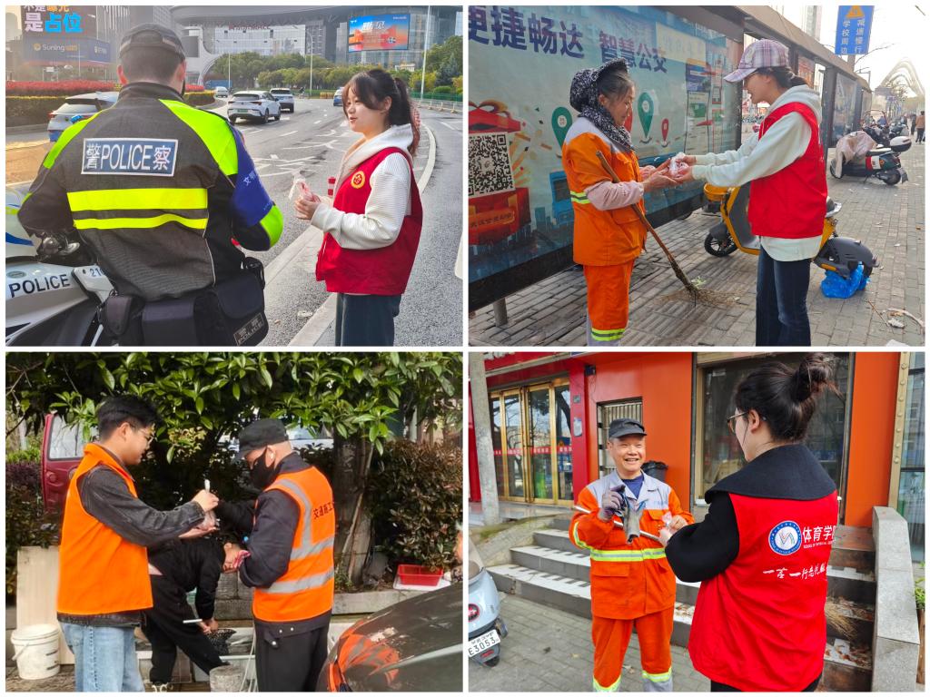 3月28日清晨,在学雷锋月志愿精神的感召下,集爱志愿服务队联合湖北商贸学院青年志愿者协会、体育学院“一言一行”志愿服务队、法商学院“求实”志愿服务队,共同参与“集爱”品牌项目“益行者”志愿服务行动。志愿者们走上街头,为坚守岗位的环卫工人、执勤警察、外卖小哥等城市一线劳动者送上鸡蛋与矿泉水,用温暖传递敬意,以行动践行志愿初心。