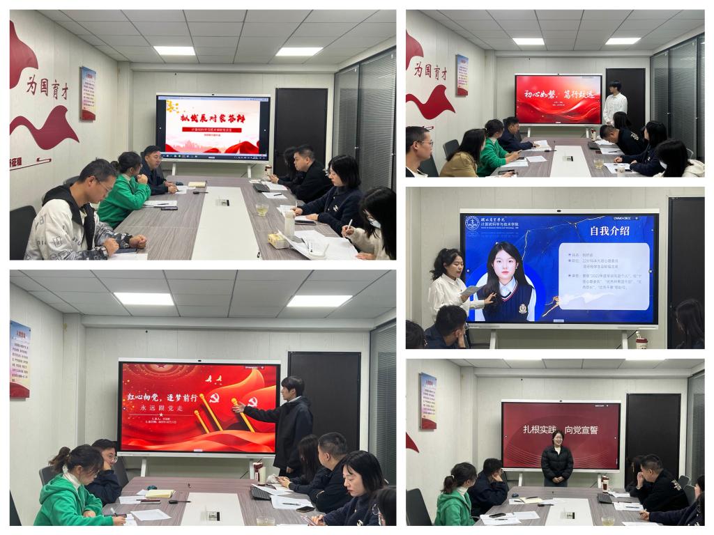 为严格党员发展程序,提升党员发展质量,计算机科学与技术学院于10月16日、21日分别在咸宁、武汉两校区召开2025年下半年拟发展对象答辩会。学院党总支书记谢志洋、副书记罗维、学院全体辅导员以及答辩对象参加会议。