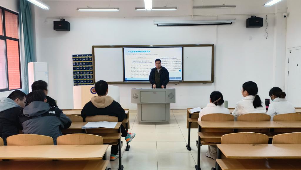 王诺杰聚焦“大学生医保报销”政策进行精准解读,切实解决学生就医保障的“急难愁盼”问题。他结合2025年医保新政,用“政策条款+实例拆解”的方式,清晰讲解了门诊报销比例、住院结算流程、异地就医备案等核心内容,重点强调了校医院首诊报销优势及校外转诊的规范流程。针对学生实习、寒暑假异地就医等场景,他现场演示国家医保服务平台APP操作方法,手把手指导辅导员掌握备案流程,确保政策红利精准触达学生。