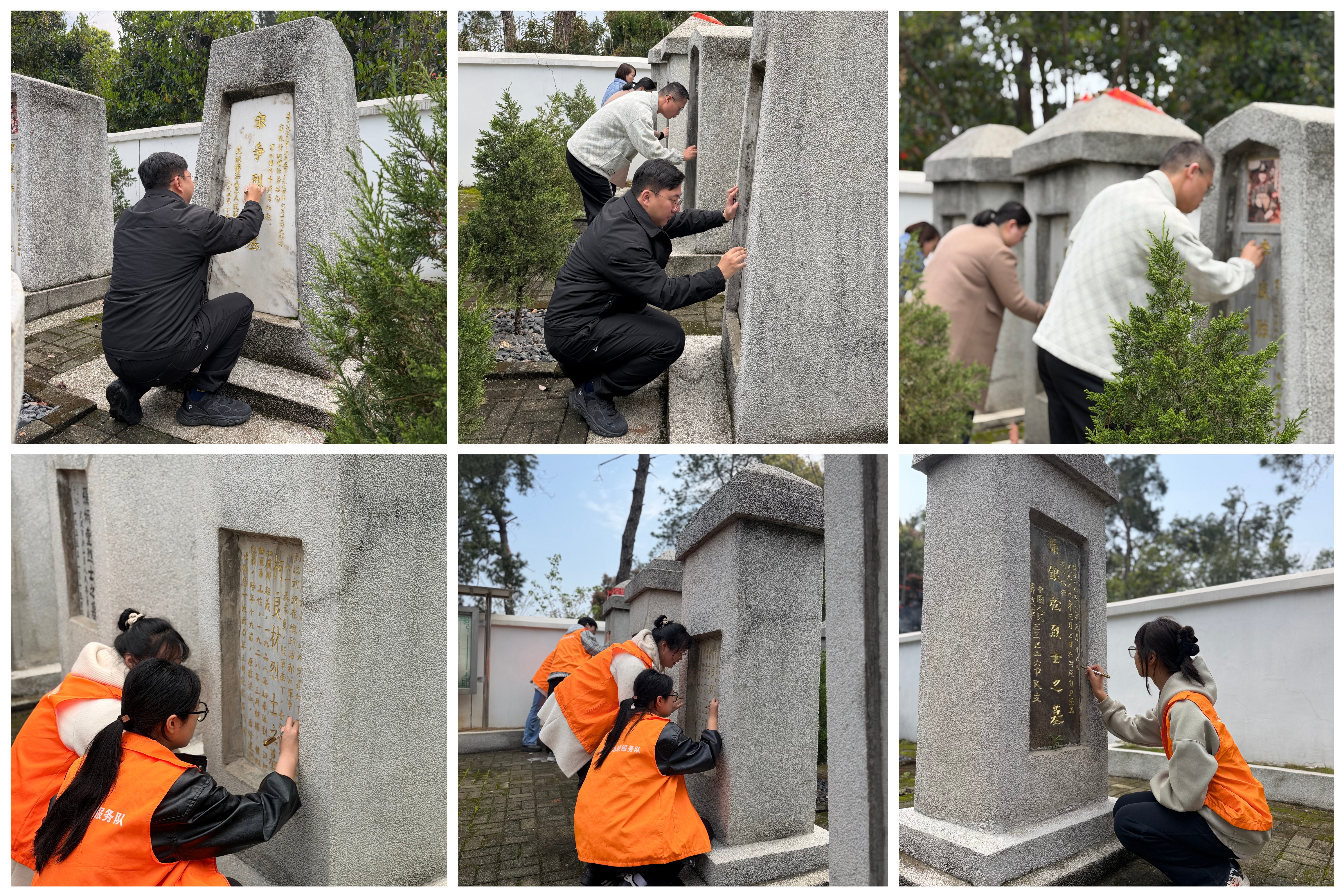 3月31日,学院党总支书记谢志洋、副院长詹翠丽带领20余名师生党员走进陈定一烈士陵园,开展清明祭扫“描金”活动。全体师生在烈士墓前庄严肃立默哀,缅怀革命先烈;随后化身志愿者清扫陵园卫生、擦拭墓碑灰尘,并手握画笔为墓碑文字描红添金,在亲身实践中聆听英雄事迹、接受革命奉献精神的熏陶。学生代表程廷宇表示,此次活动是与历史的深情对话,让红色种子在青春土壤中生根发芽。谢志洋书记强调,陈定一烈士精神永恒,勉励同学们传承烈士遗志,将爱国热情转化为勤学奋进的动力。